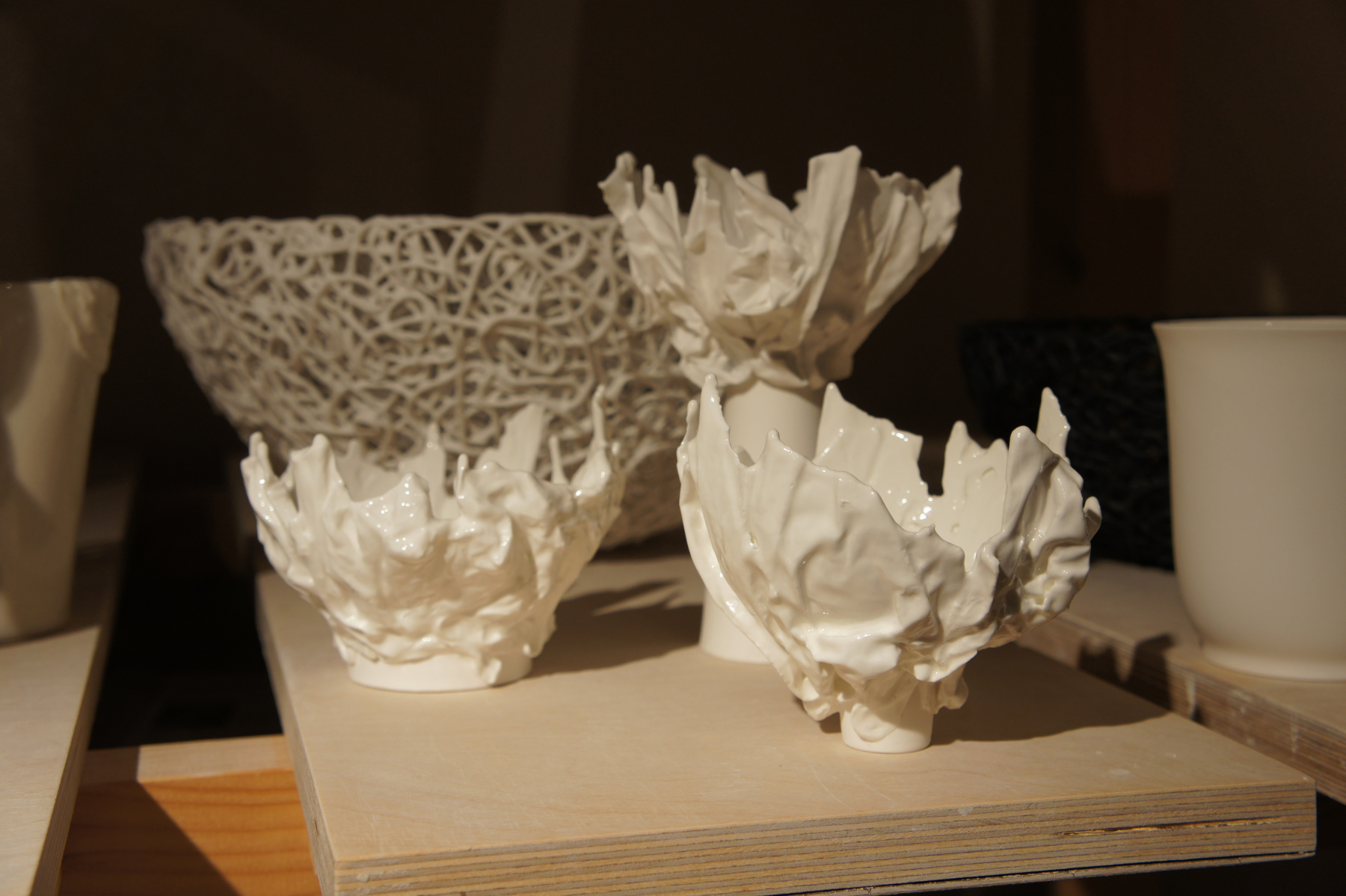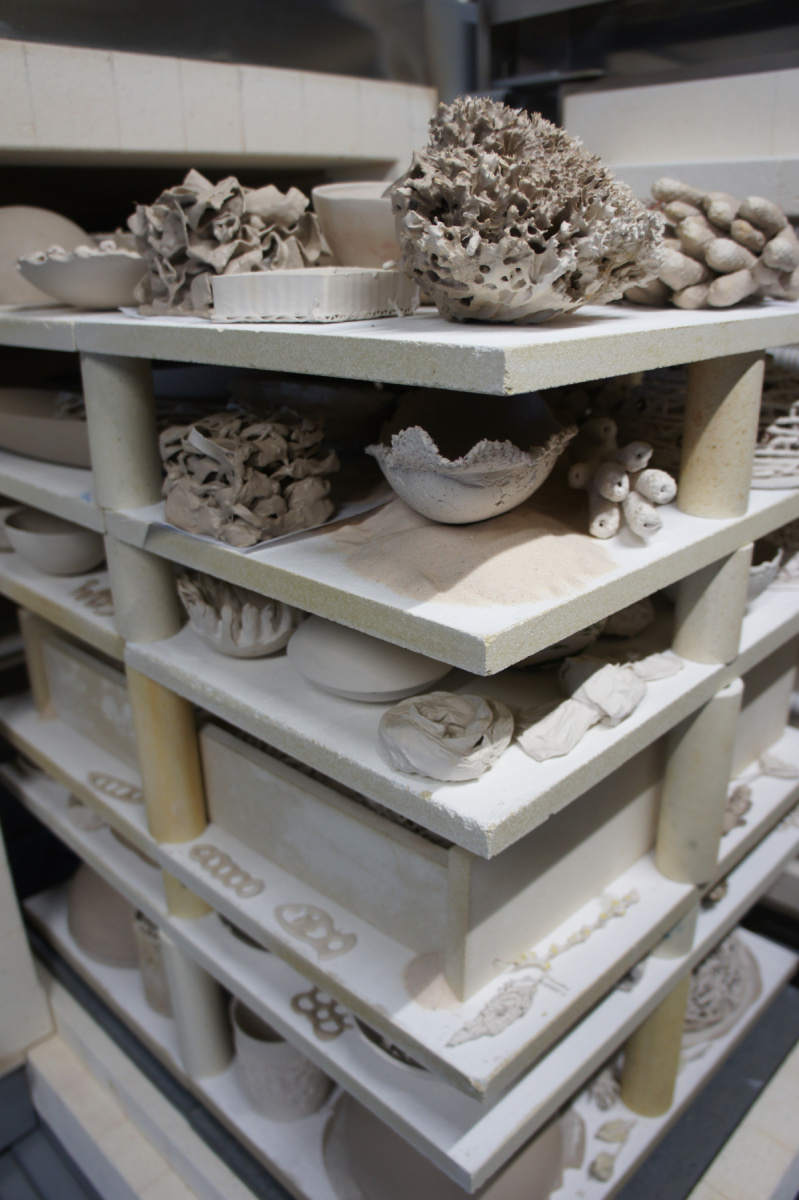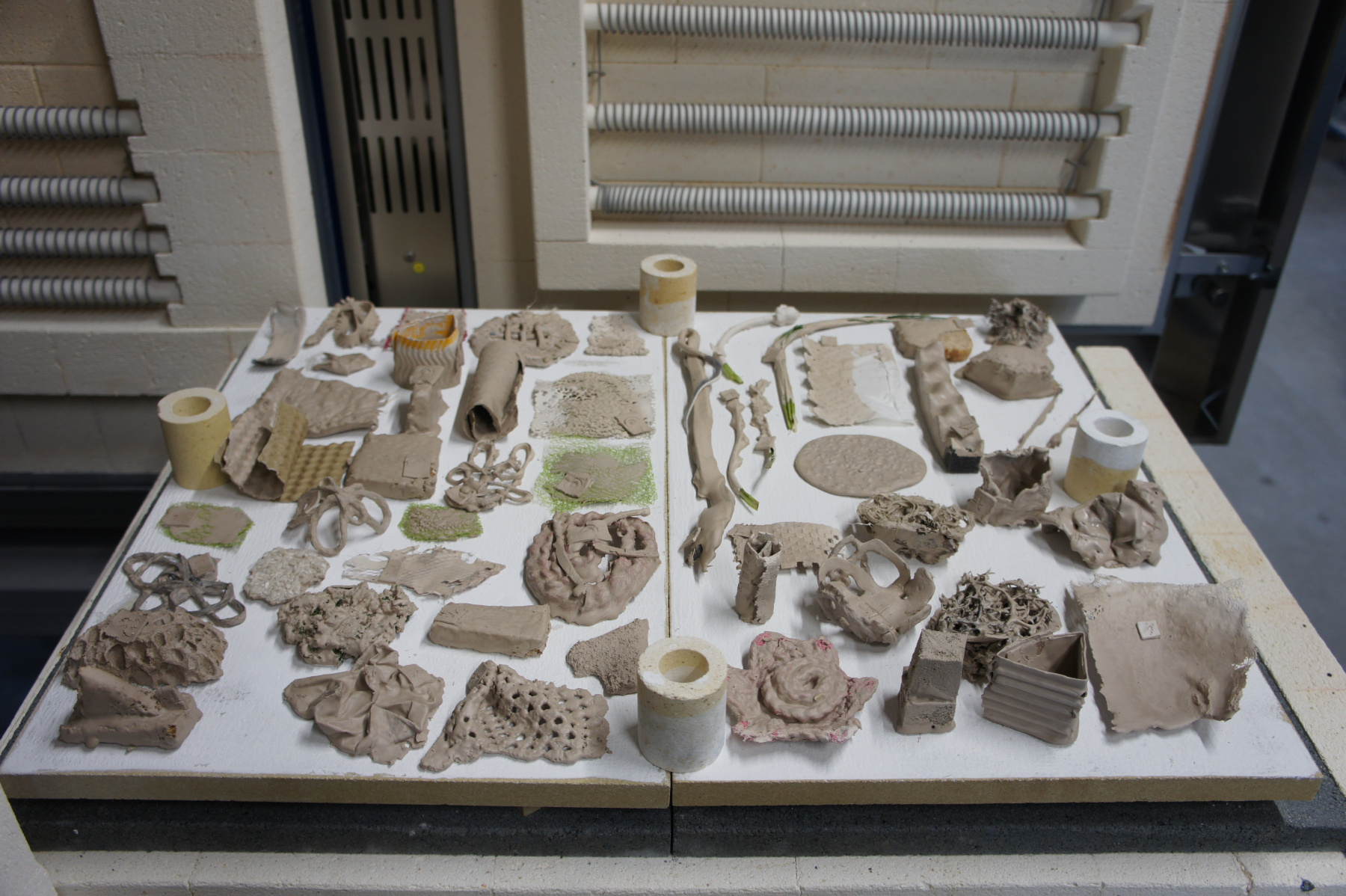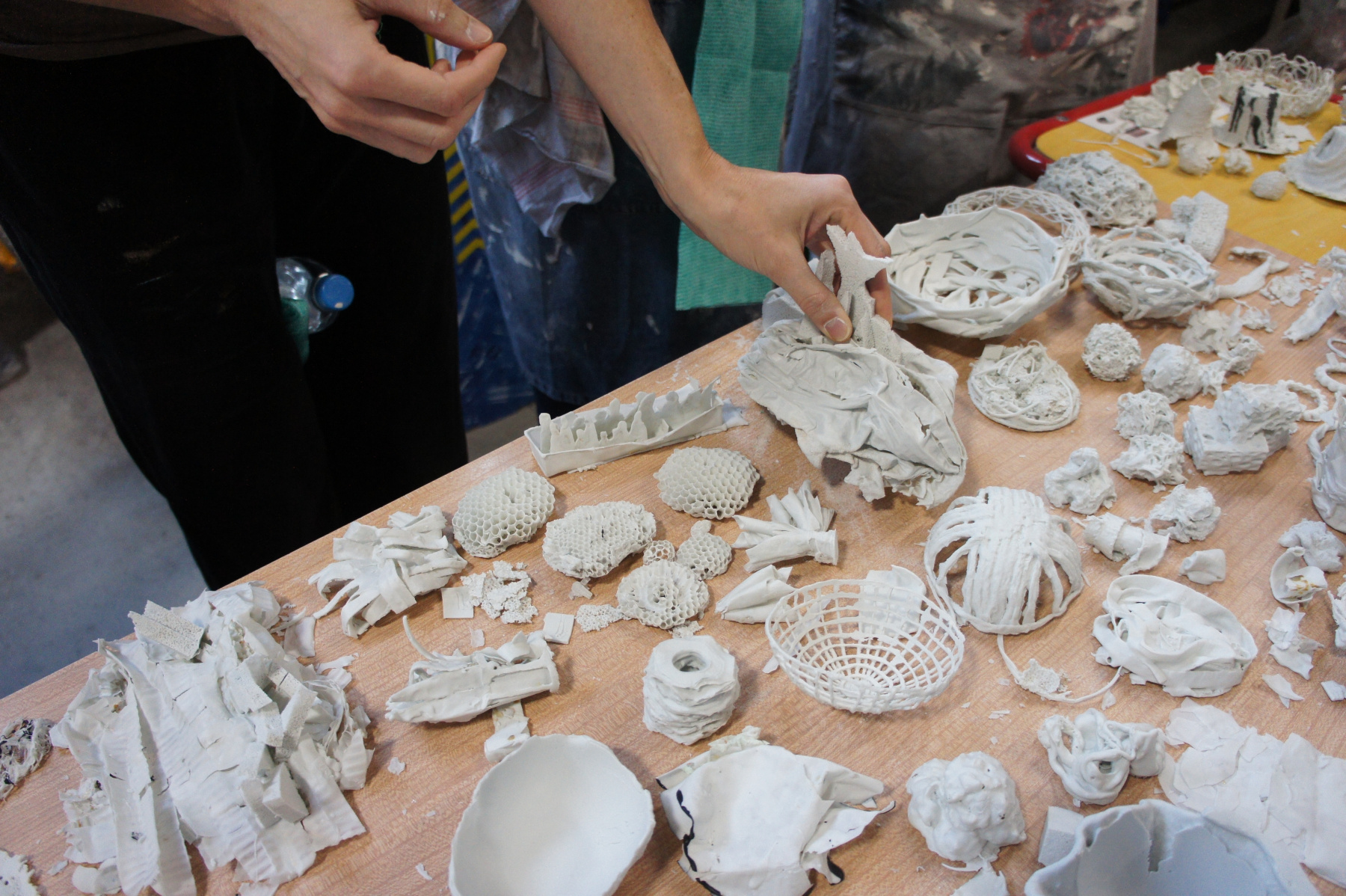 Die Vielfalt der Möglichkeiten ist beeindruckend und schnell können auch ohne grosse keramische Vorkenntnisse eigene Ideen umgesetzt werden. So können z.B. Teelichter aus getauchtem Moos, komplexe Schalen oder Objekte aus vorgeschnittenen Schaumstoffteilen und transluzente Lampenschirme aus Papier hergestellt werden. Einige der hergestellten Arbeiten werden während des Workshops gebrannt. Ziel des Kurses ist es, ein Gefühl dafür zu bekommen, mit welchen Materialien sich welche Effekte erzielen lassen, wie dünn oder dick gearbeitet werden kann und welche Hilfsmittel es gibt, um nach dem Brand ein ansprechendes und stabiles Ergebnis zu erhalten.