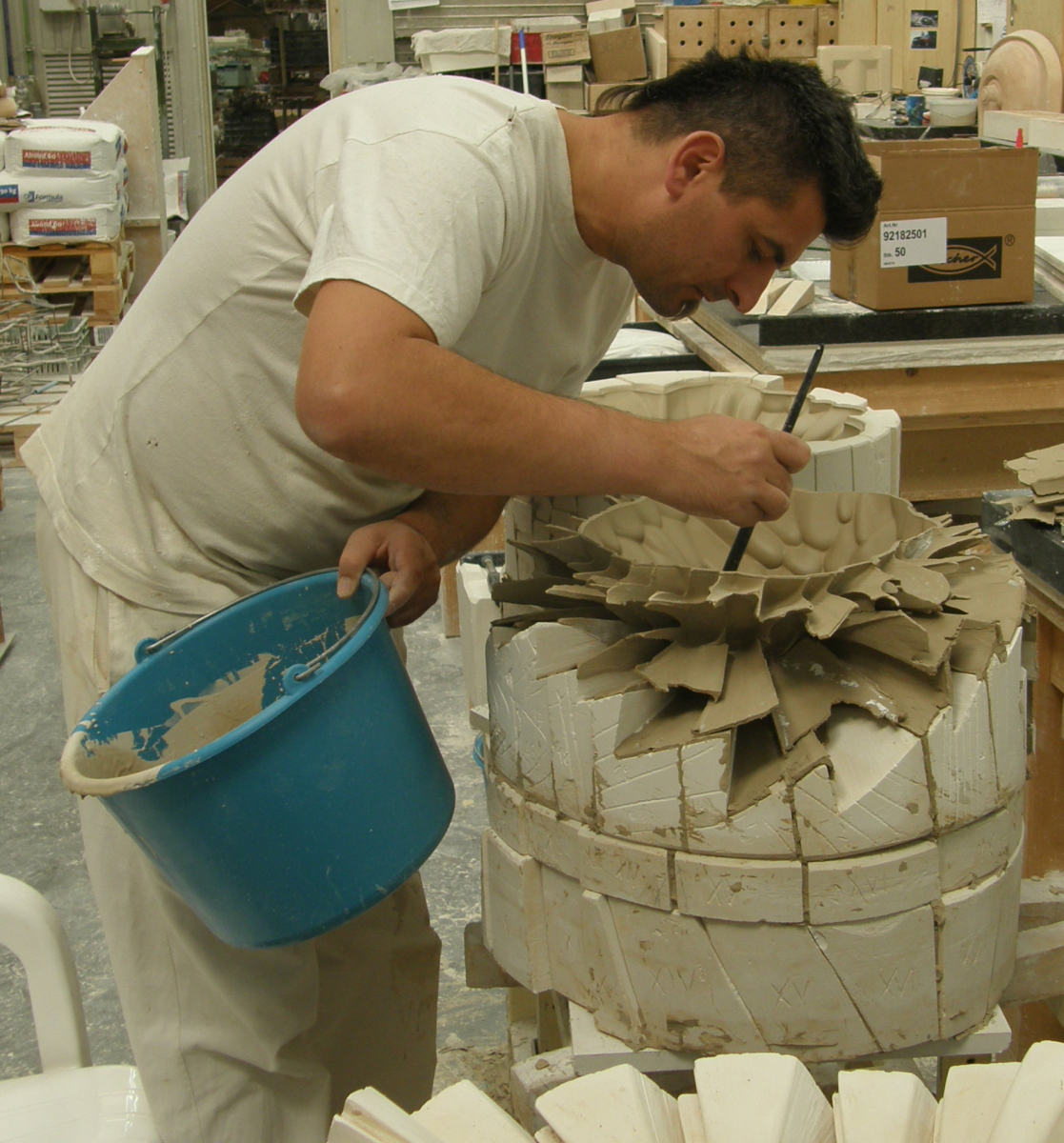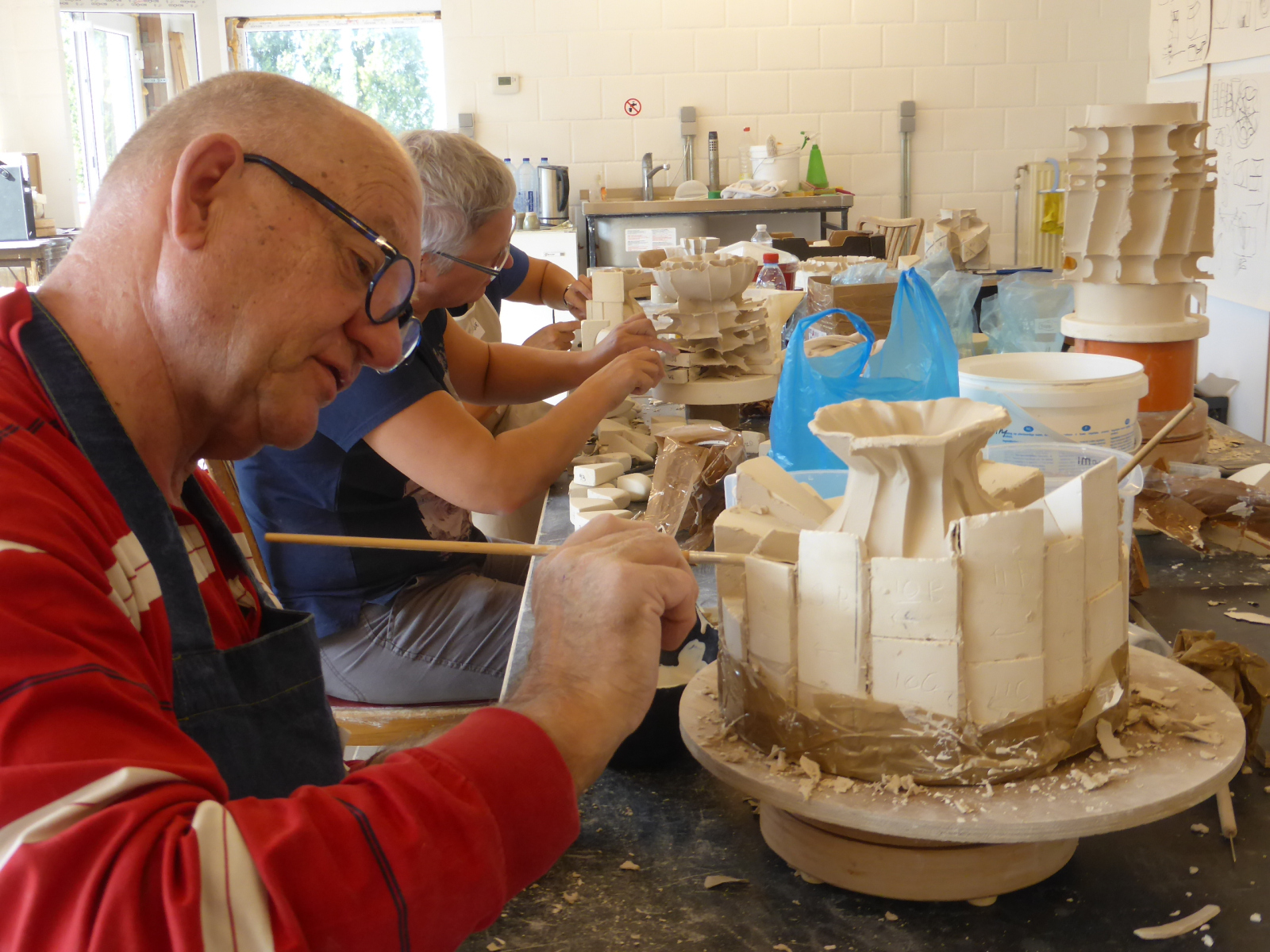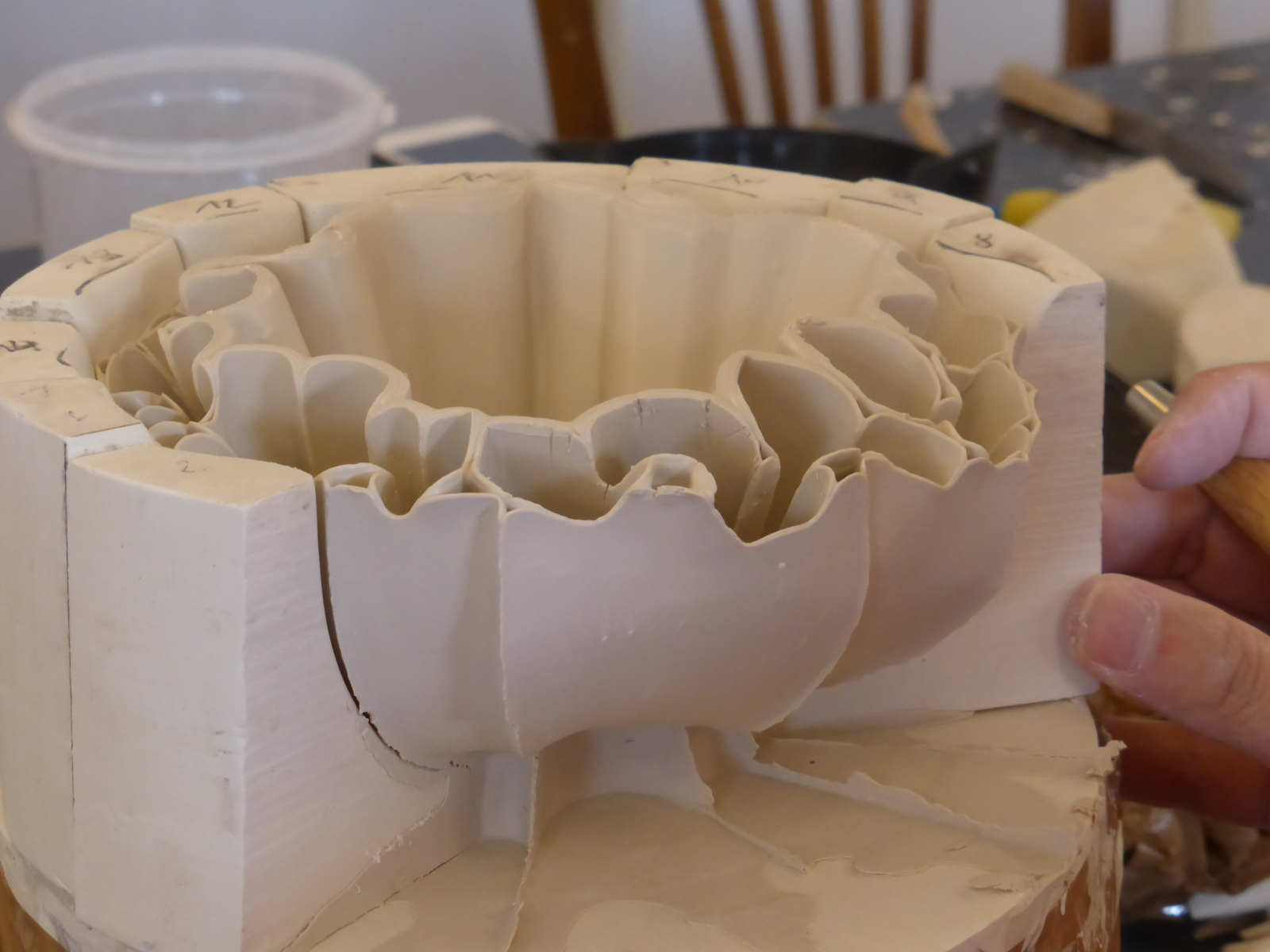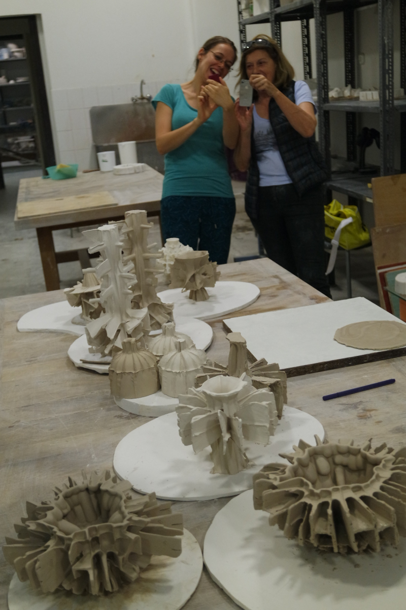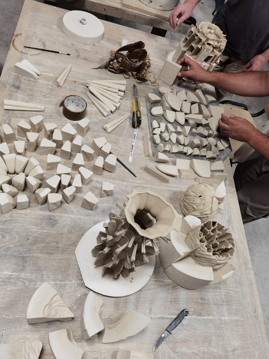 Participants begin working on their individual plans or based on one of Zsolt’s items, through individual consultation, before everyone starts creating their own plaster form. All participants will create a different form, allowing us to learn from each other’s work. We will go through the entire process from mixing the plaster, sawing, sanding and assembling the plaster form all the way to the porcelain casting.